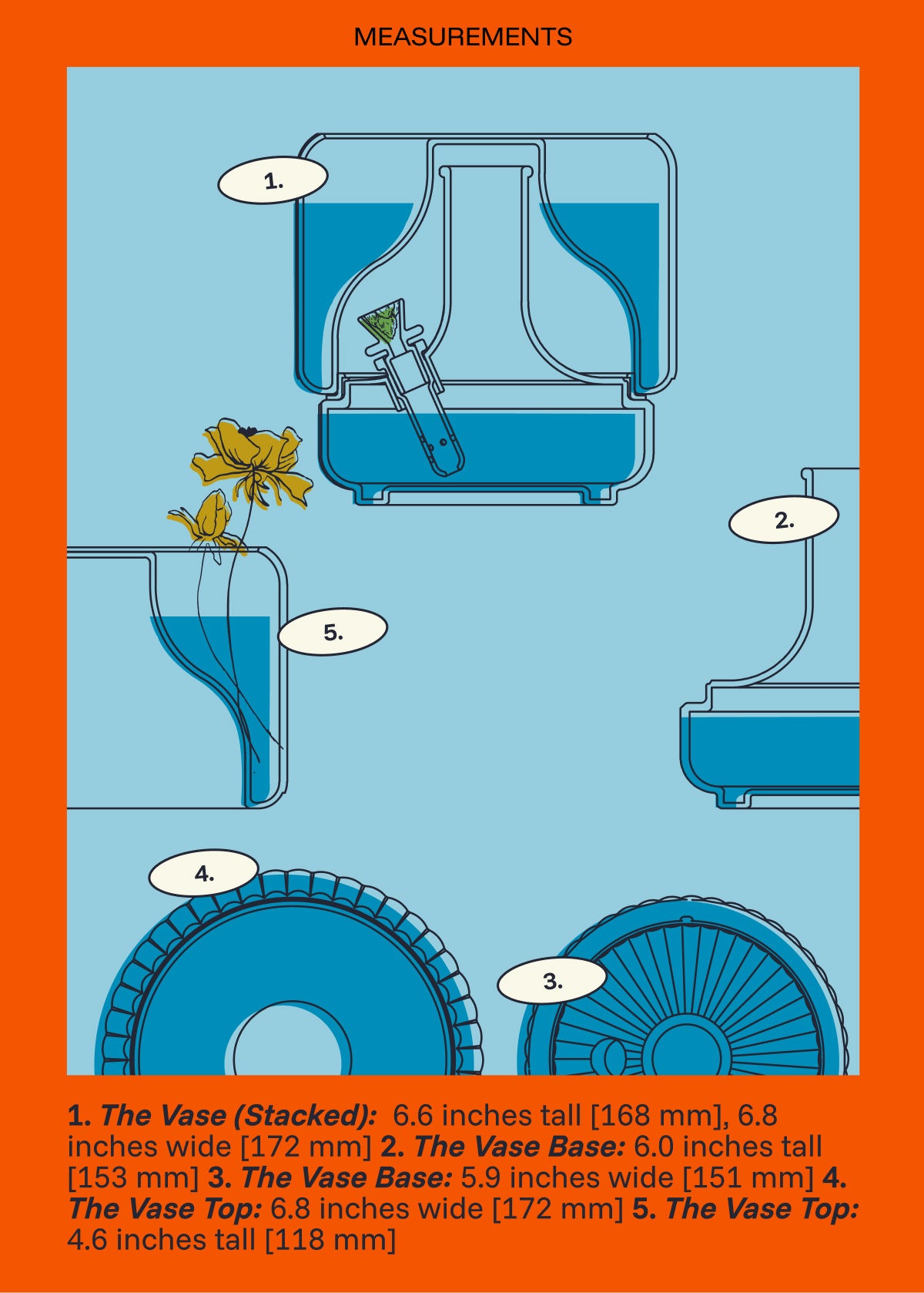 - The Vase Base: 6.0 inches tall [153 mm], 5.9 inches wide [151 mm]